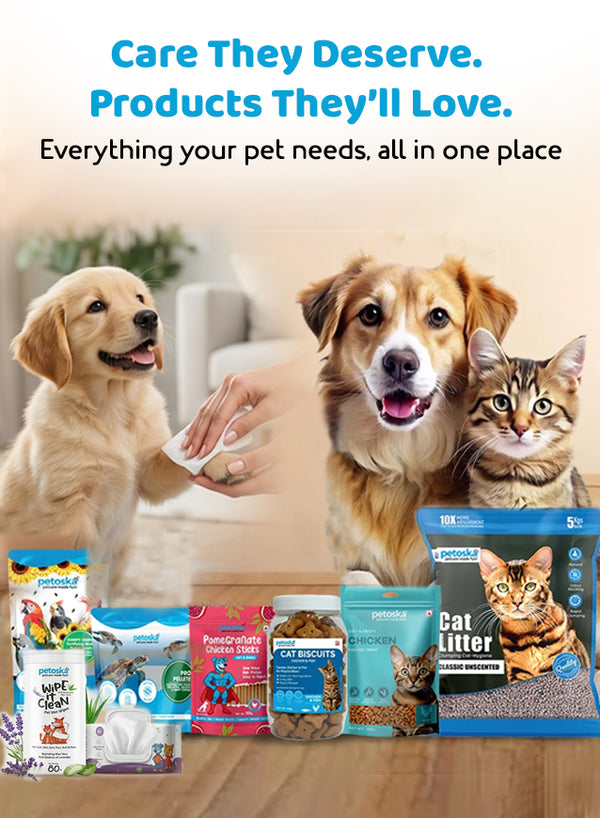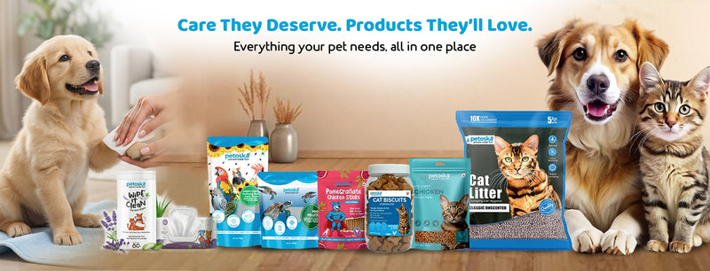 Say goodbye to stinky and dirty litter boxes! With a calming range of fragrances, Petoska clumping cat litter provides exceptional clumping, rapid absorption, and unrivalled odour-locking. It is made of high-quality bentonite clay, ensuring a dust-free, sanitary bathroom experience for your feline friend. Your cat's comfort begins with a clean environment, and we make it easier for you. For homes with puppies, kittens, elderly dogs, or those recovering from surgery, Petoska's pet dry sheets are a great hygienic solution. These sheets keep your pet comfortable and dry while protecting your flooring and furniture. They are soft on paws, absorb quickly, and are simple to wash. An environmentally friendly, reusable substitute for single-use pads.