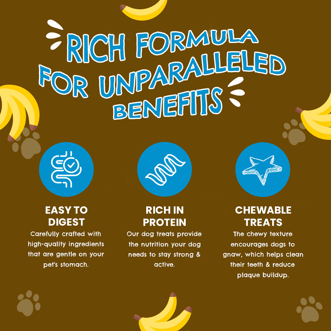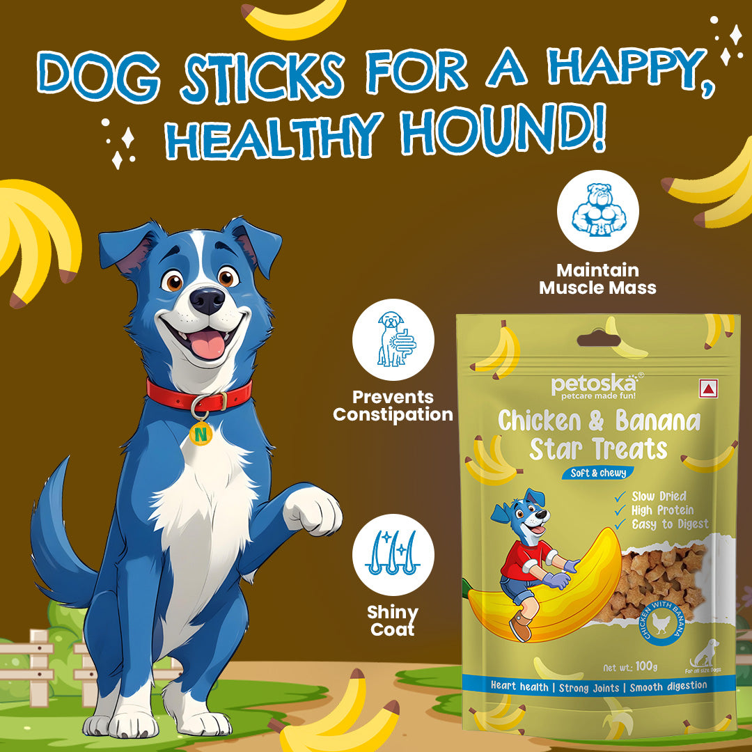 Made with banana, high-quality chicken and loaded with nutrition, Petoska dog treats are perfect for those tail wags. Made with natural ingredients, these treats are easy on digestion, making them a suitable snack for sensitive stomachs.