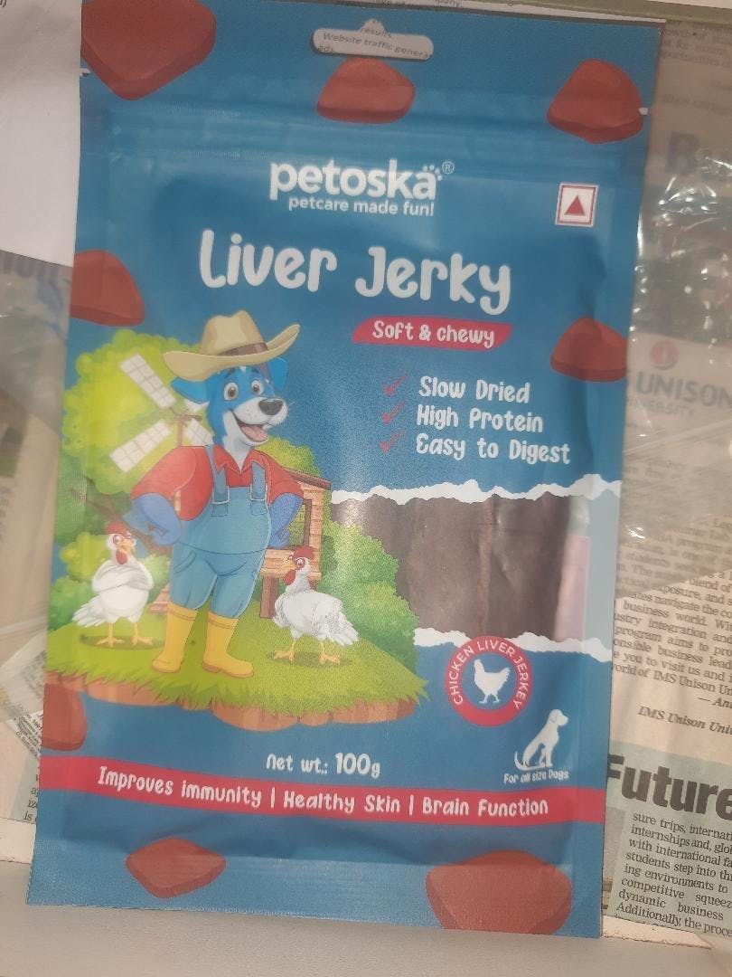 Rich in protein tasty chicken liver jerky my dog enjoys every bite.