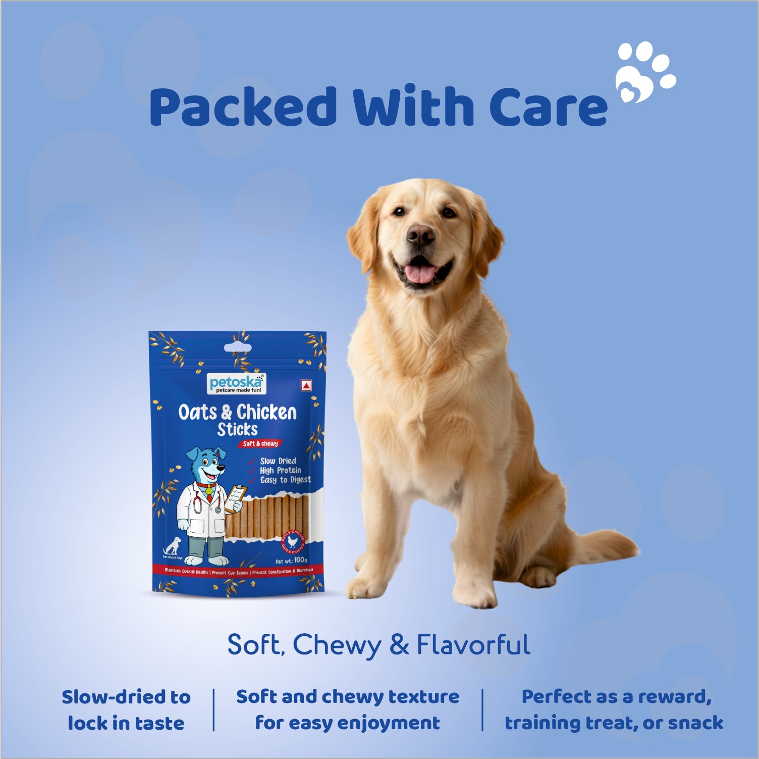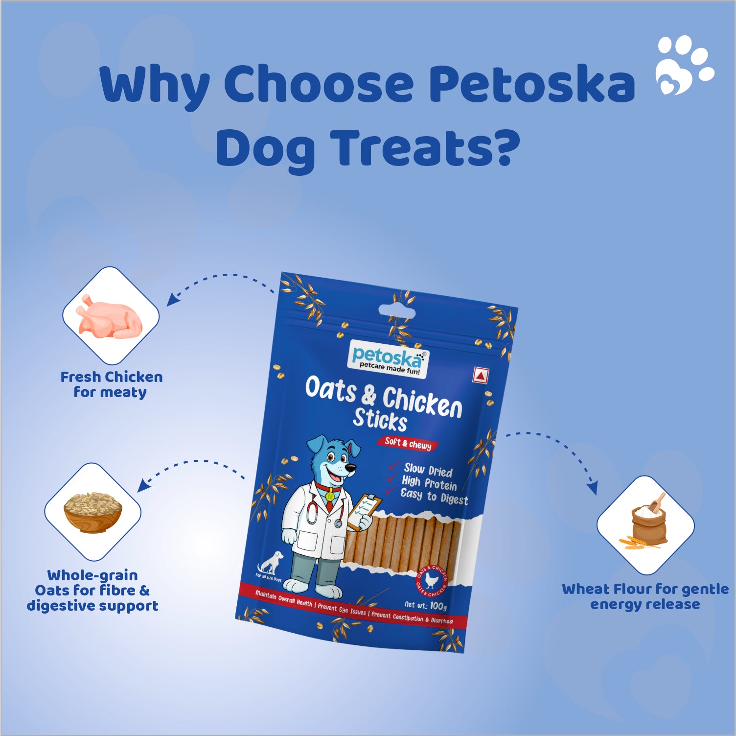 Petoska Chicken Oats Sticks have quickly become a staple in our home, ensuring my dog stays happy and healthy!