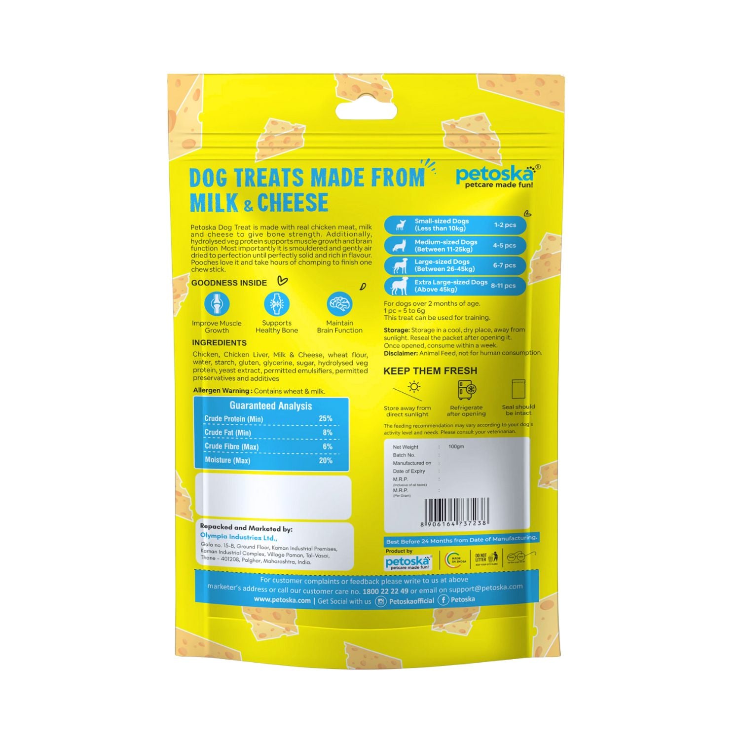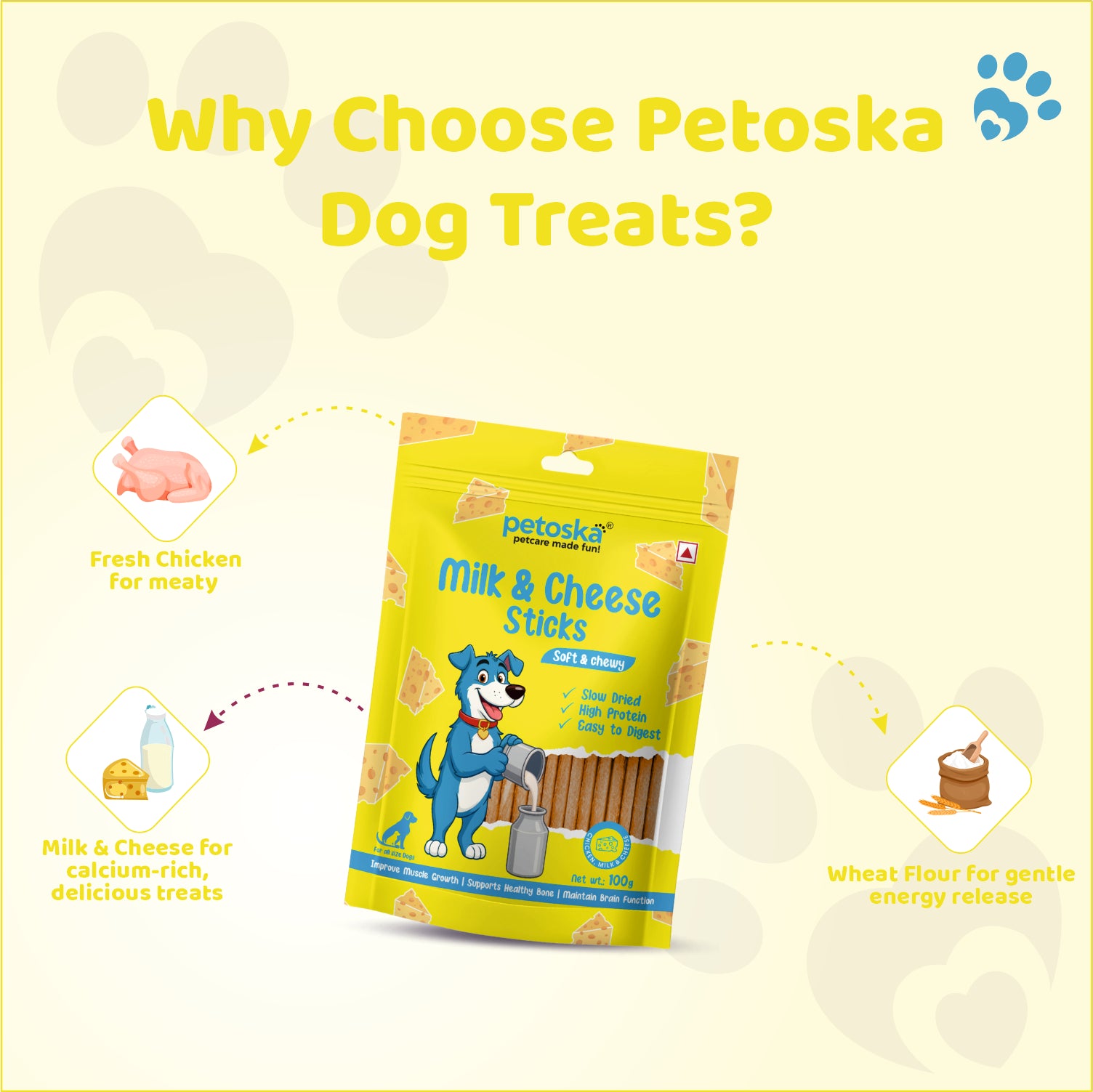 Made with milk and cheese, these snacks are a great source of calcium, which is important for the growth and maintenance of healthy bones and teeth. protein-rich snack that not only pleases your dog's taste senses but also promotes their general health.