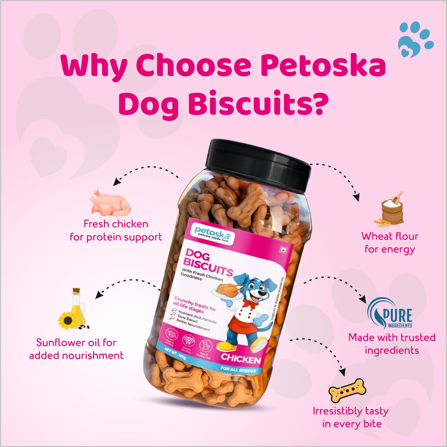 • Nutritious & Wholesome: Prepared using carefully selected dog biscuit ingredients, these treats deliver balanced nutrition without unnecessary fillers.