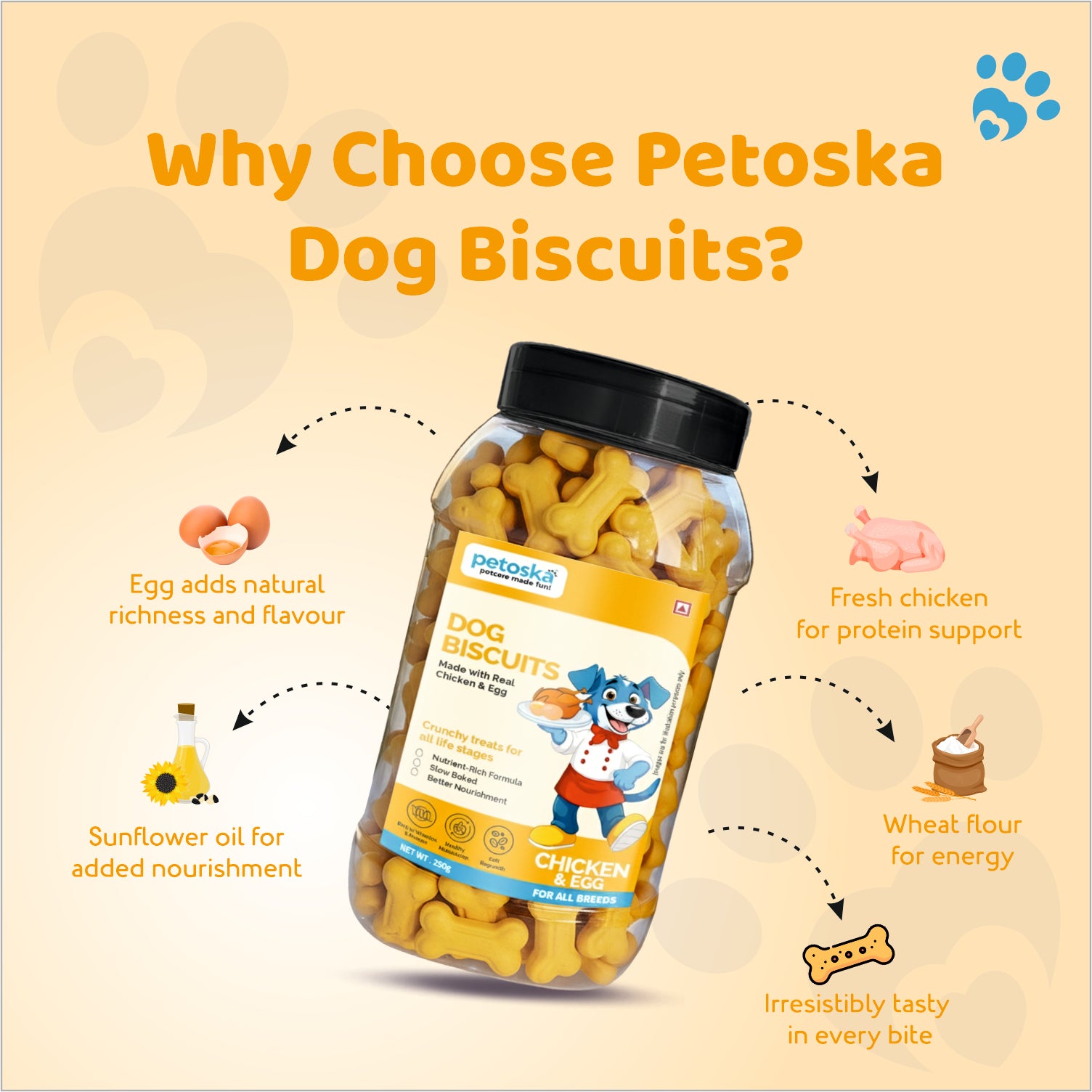 Made with fresh chicken & egg, they are high in vitamins & protein and packed with essential minerals. Every bite of this slow-baked food promotes healthy metabolism, cell regrowth, and general well-being by locking in nutrients.
